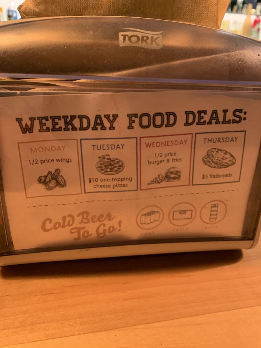 Fried crispy to order. Tossed in choice of sauce or dry rub – see descriptions below. • Sweet Thai Chili: Sweet mild chili sauce. • Dry Rub: House dry rub including cumin, dried thyme & oregano, cayenne, coriander, paprika, smoked paprika, chili powder, turmeric, salt, black pepper, & citrus zest. • Buffalo: The classic spicy, tangy, hot wing sauce. • Hot Honey: A sweet & spicy wing glaze. **Monday Food Deal: half-price wings! Only available for dine-in.**